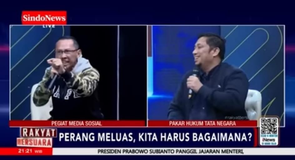 Tangkapan layar diskusi terbuka dengan pakar dalam acara talkshow di kanal YouTube SINDOnews. Menyoroti debat Permadi Arya (Abu Janda) dengan Ferry Amsari mengenai sejarah Palestina.